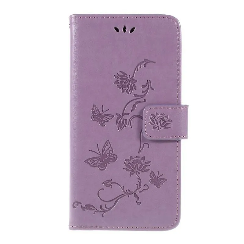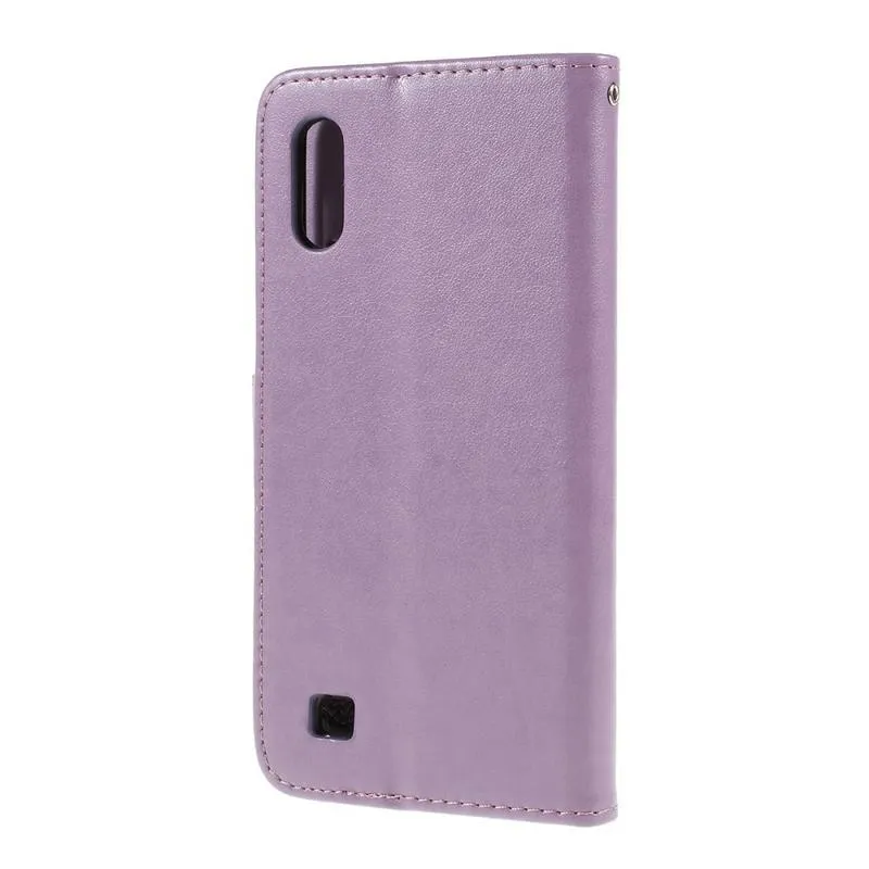 Virág PU bőr pénztárca tok Samsung Galaxy A10-hez - világos lila