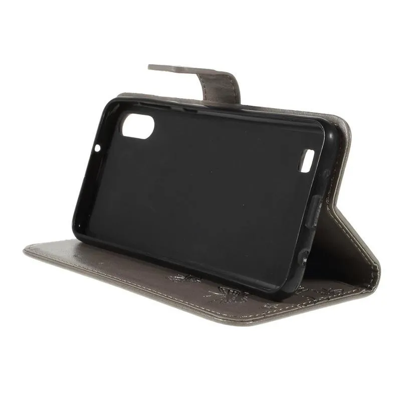 Virág PU bőr pénztárca tok Samsung Galaxy A10 készülékhez - szürke