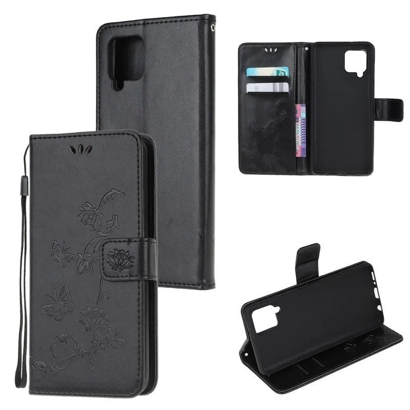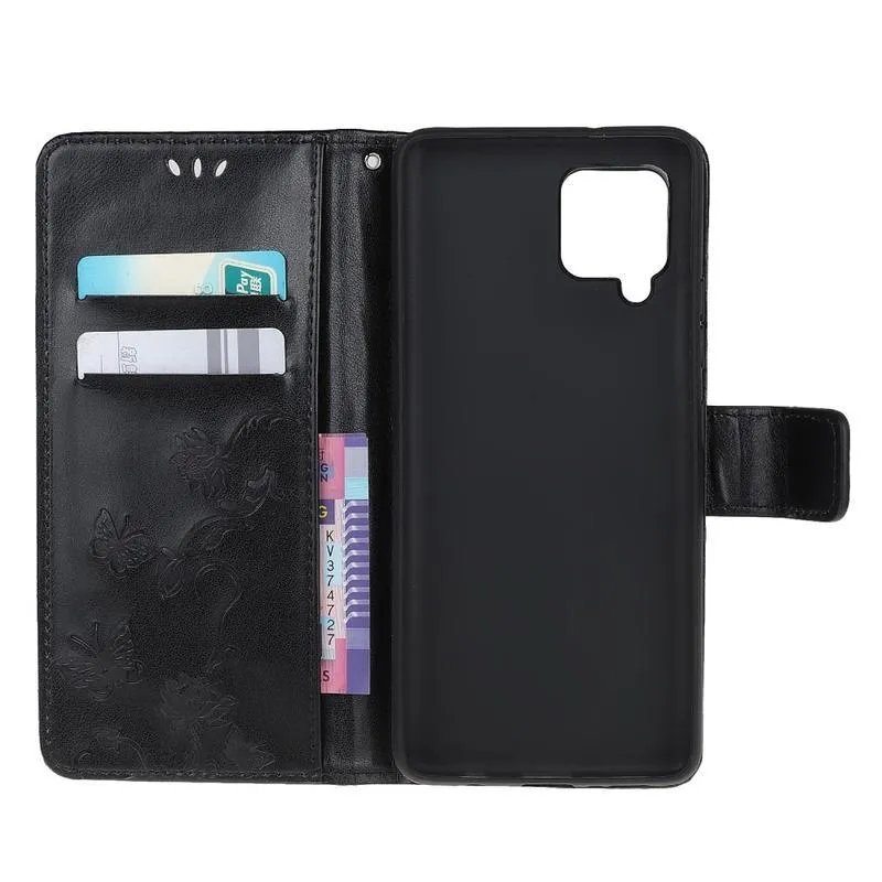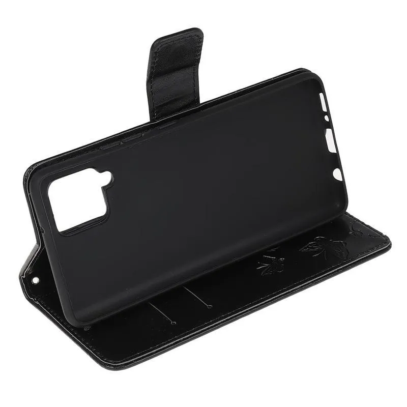 Virág PU bőr pénztárca tok Samsung Galaxy A12/M12 készülékhez - fekete
