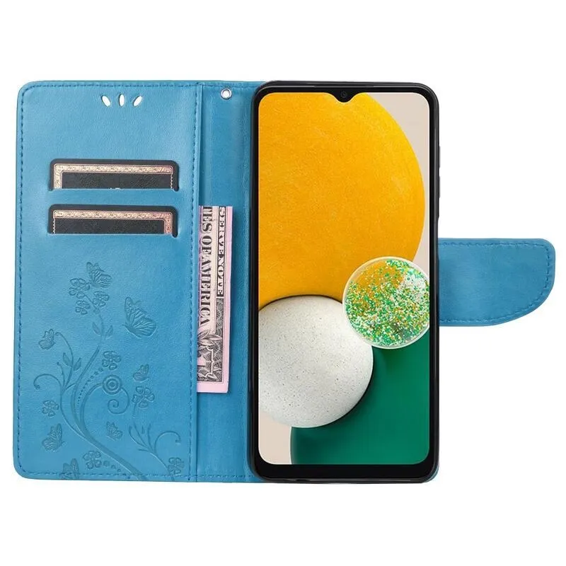 Virág kék pénztárca tok Samsung Galaxy A13 4G-hez