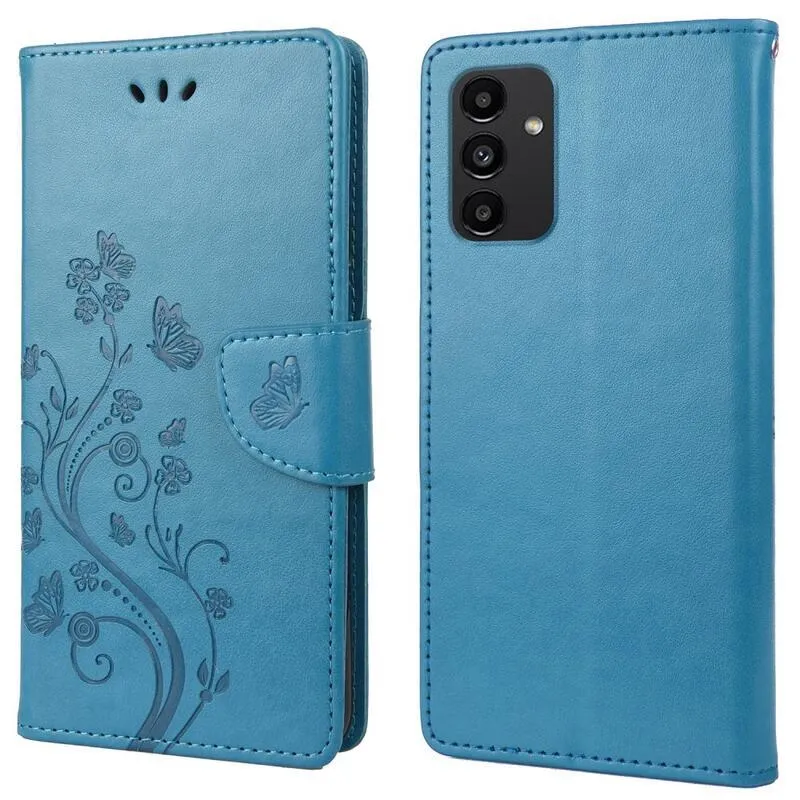 Virág PU bőr pénztárca tok Samsung Galaxy A13 4G-hoz - kék
