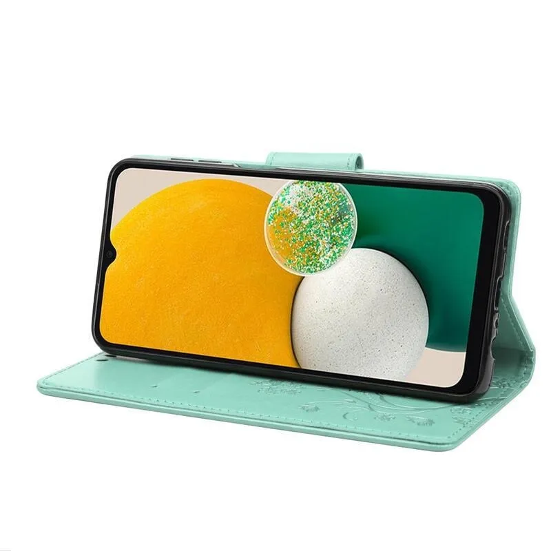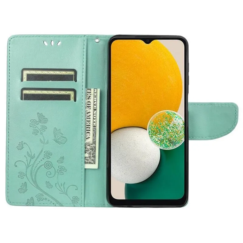 Virág zöld pénztárca tok Samsung Galaxy A13 4G-hez