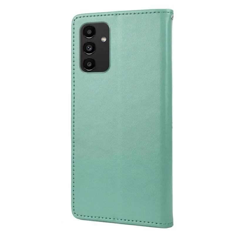 Virág PU bőr pénztárca tok Samsung Galaxy A13 4G-hoz - zöld
