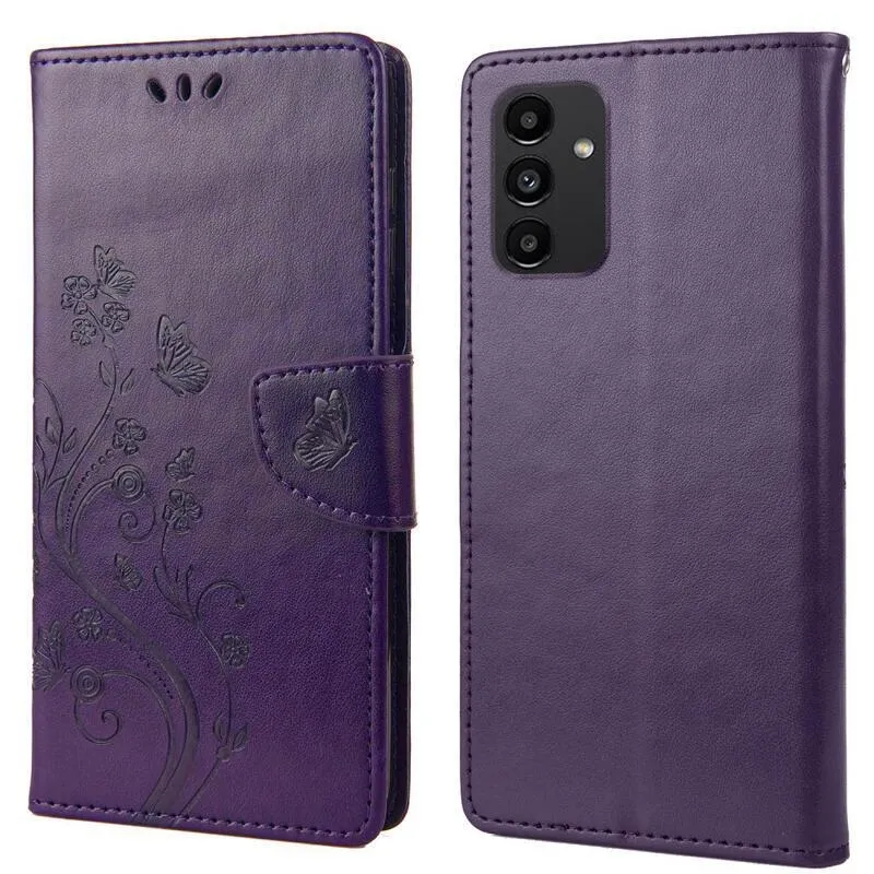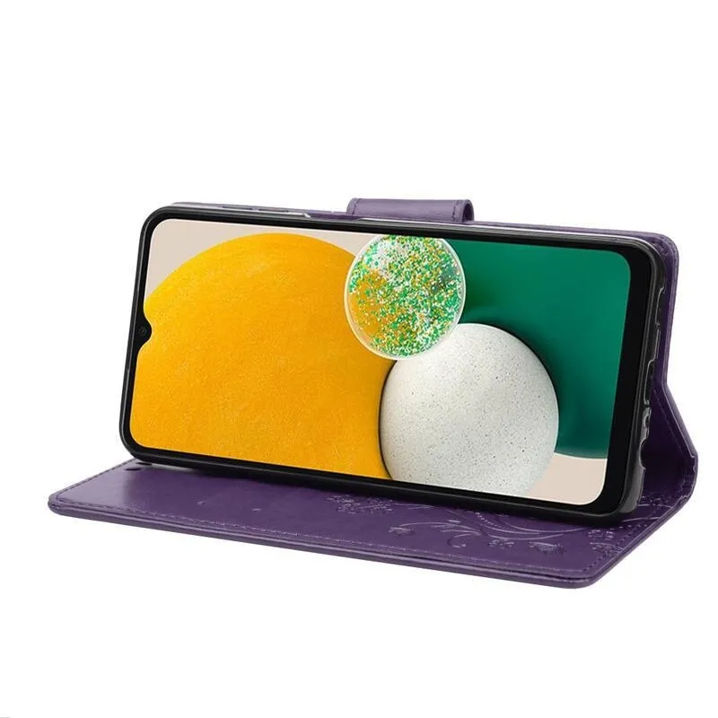 Virág PU bőr pénztárca tok Samsung Galaxy A13 4G - sötét lila