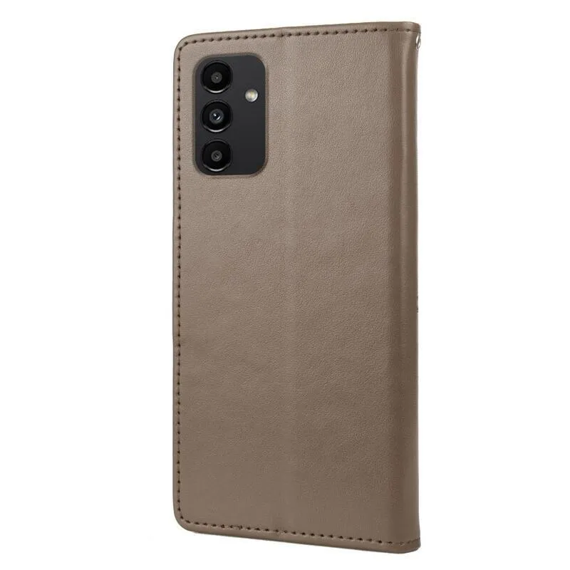 Virág PU bőr pénztárca tok Samsung Galaxy A13 4G - szürke