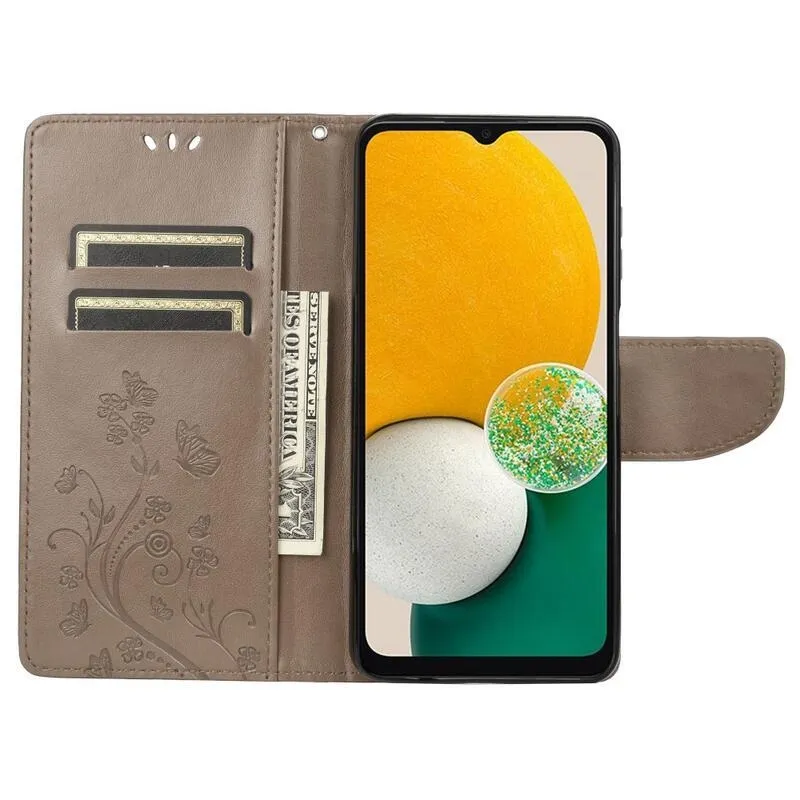 Virágszürke pénztárca tok Samsung Galaxy A13 4G-hez