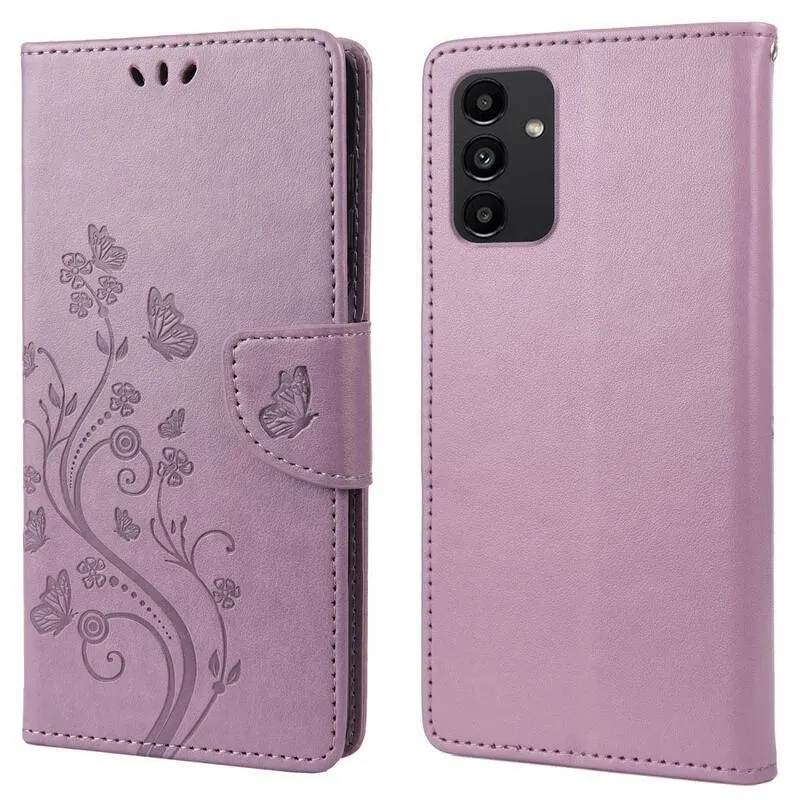 Virág PU bőr pénztárca tok Samsung Galaxy A13 4G - világos lila