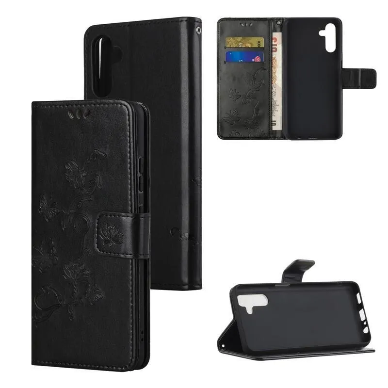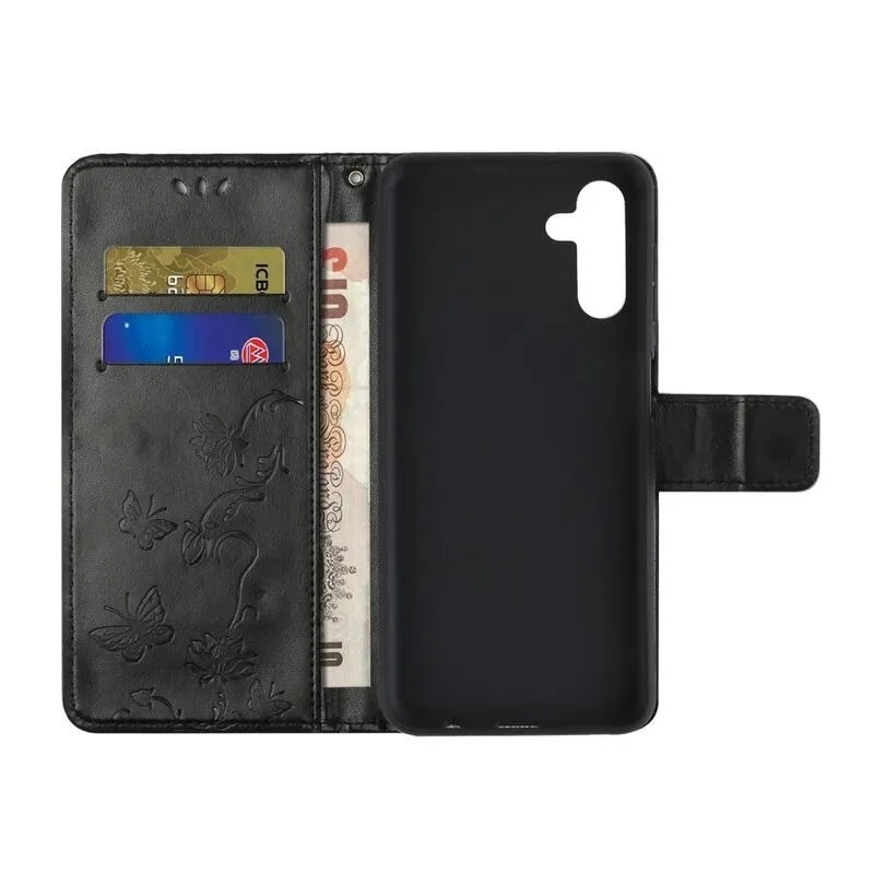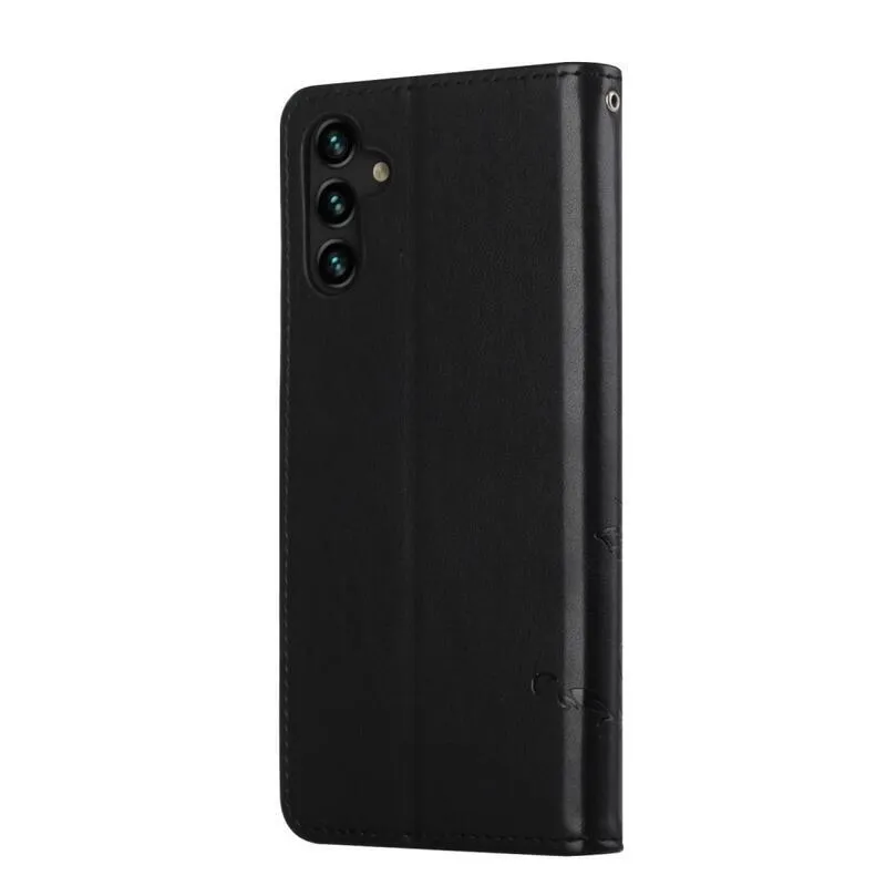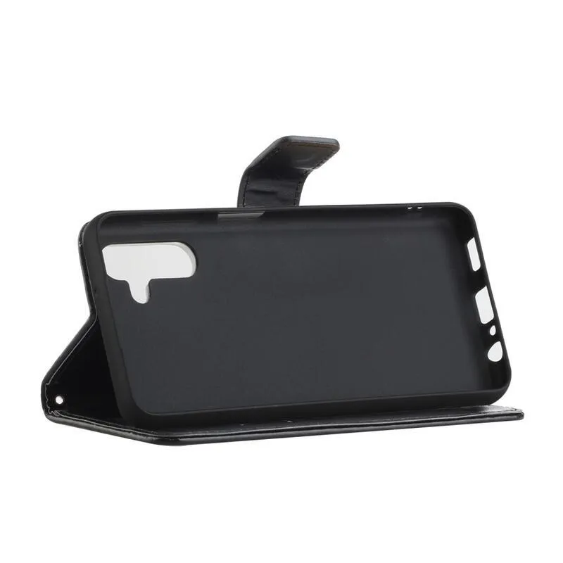Virág fekete pénztárca tok Samsung Galaxy A13 5G/Galaxy A04s számára