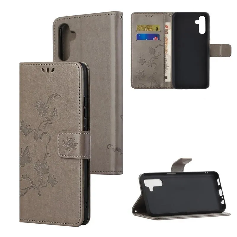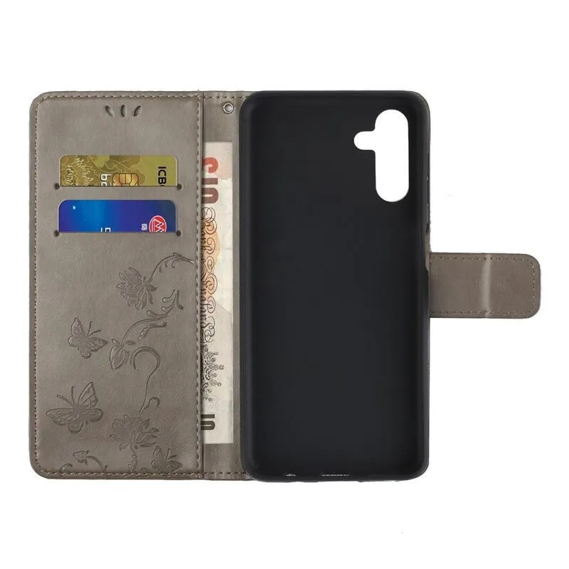 Virágszürke pénztárca tok Samsung Galaxy A13 5G/Galaxy A04s számára