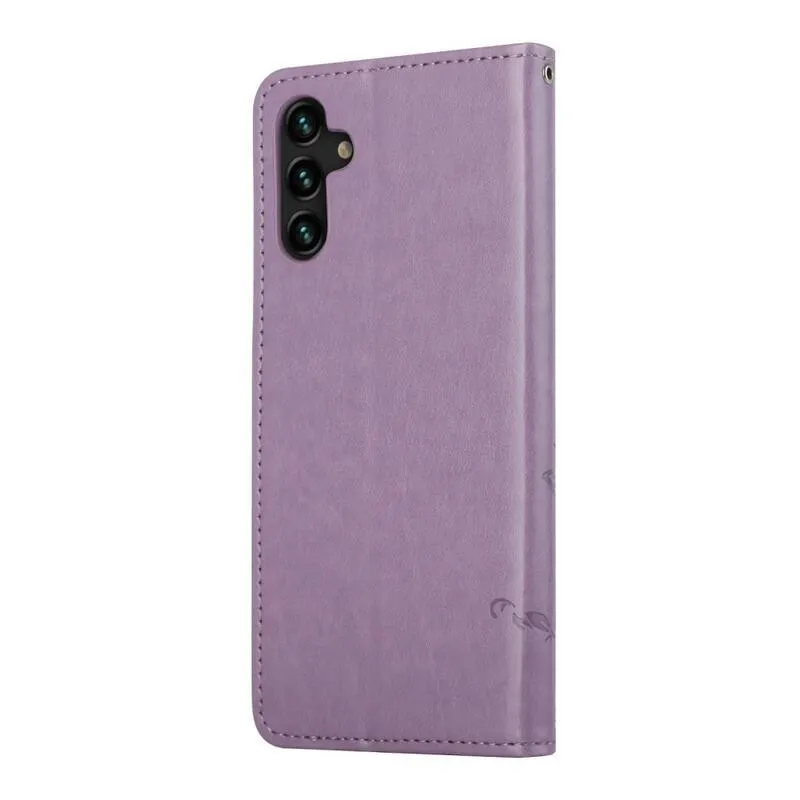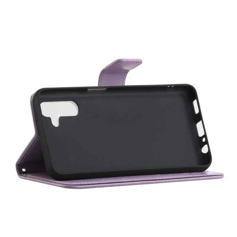 Virág PU bőr pénztárca tok Samsung Galaxy A13 5G/Galaxy A04s (164.7 x 76.7 x 9.1 mm) - világos lila
