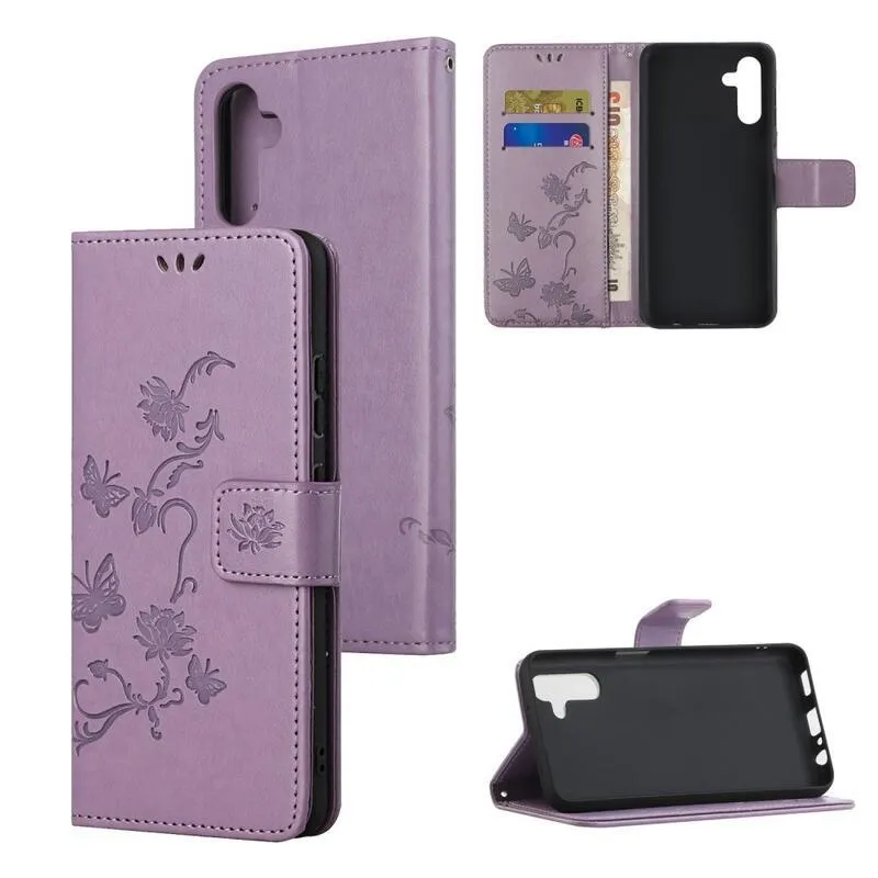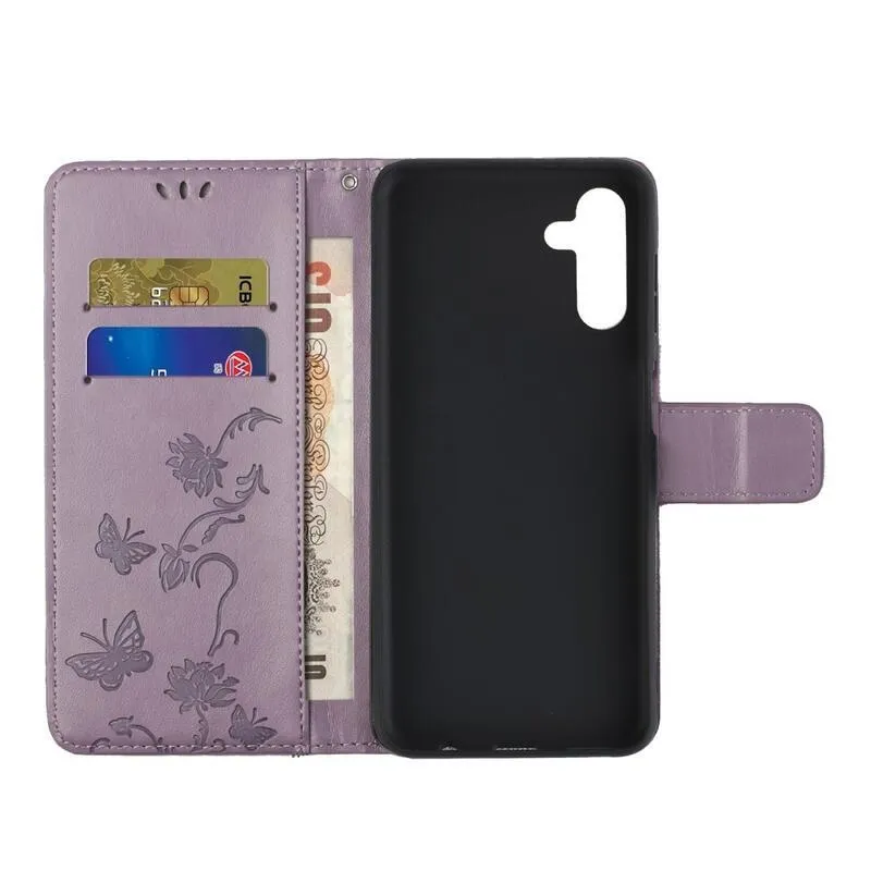 Virág világos lila pénztárca tok Samsung Galaxy A13 5G/Galaxy A04s számára