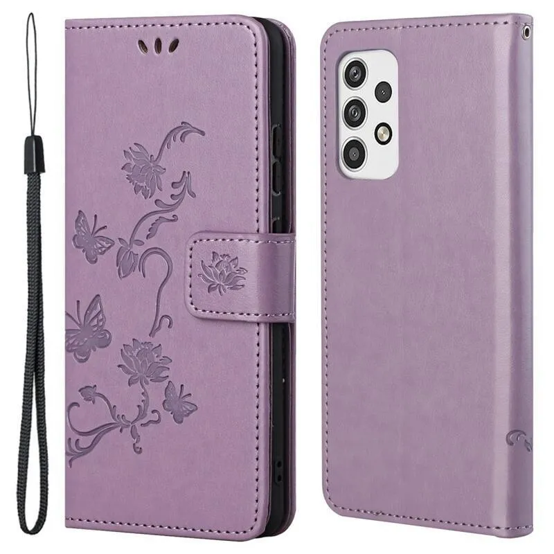 Virág PU bőr pénztárca tok Samsung Galaxy A23 4G/5G készülékhez - lila