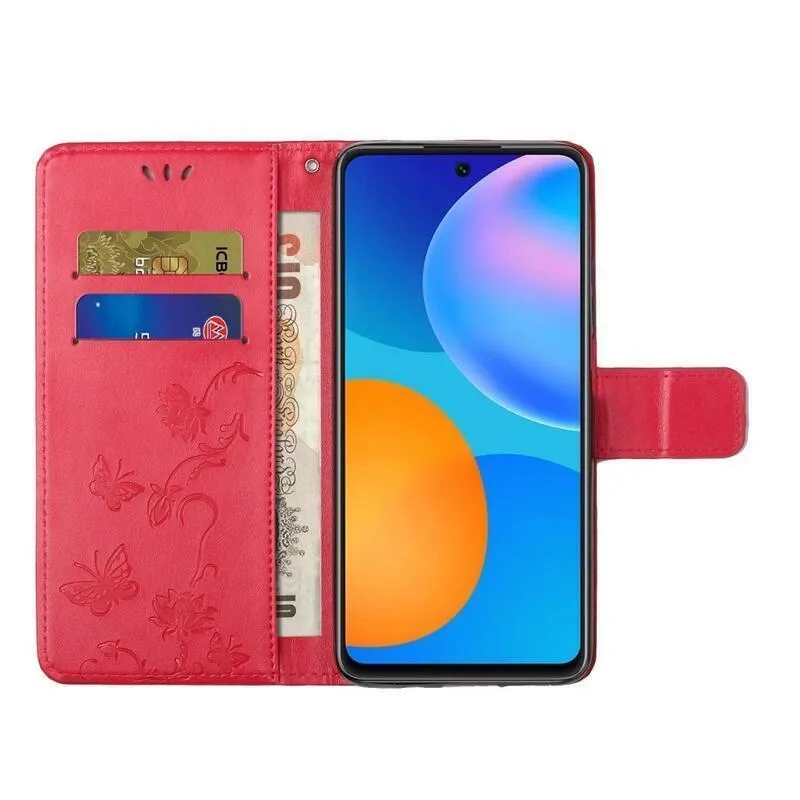 Virág PU bőr pénztárca tok Samsung Galaxy A32 4G-hez - piros