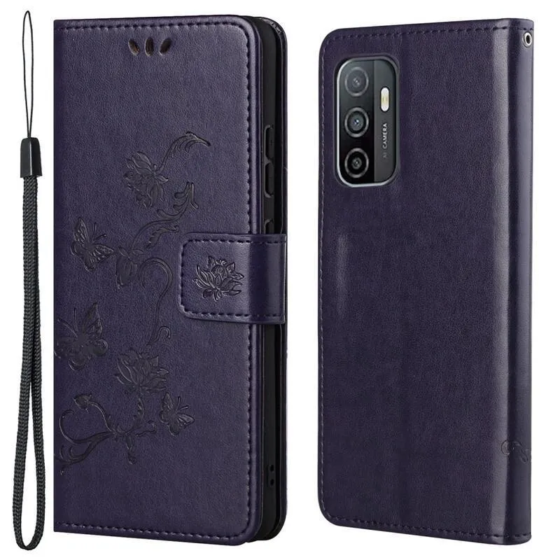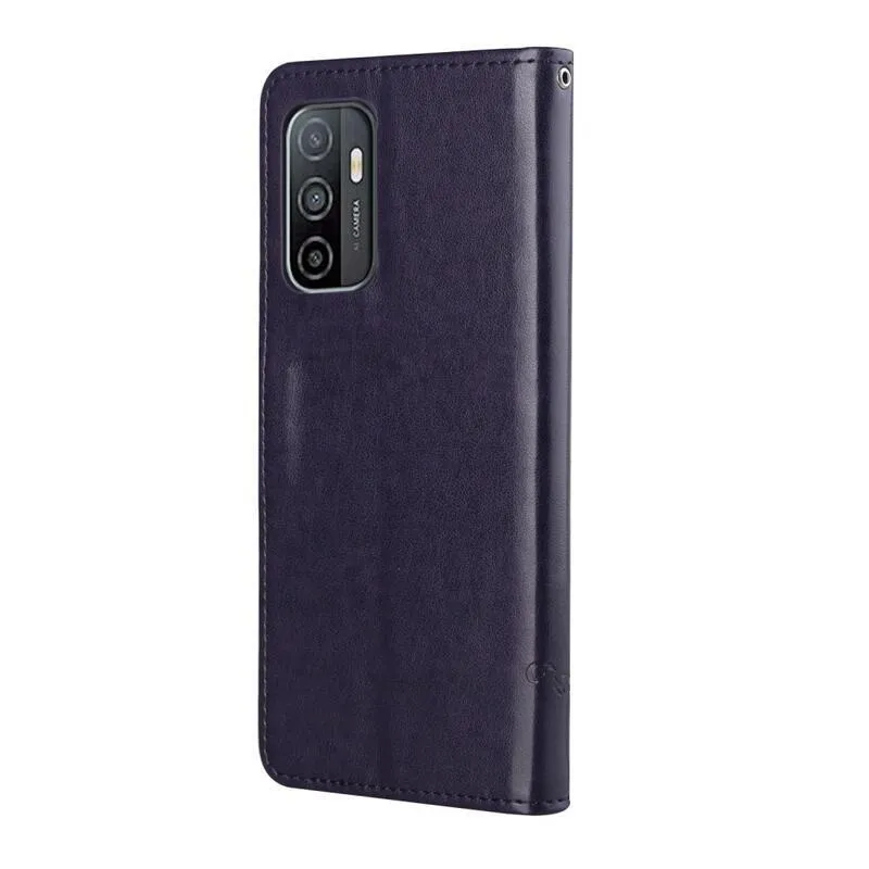Virág PU bőr pénztárca tok Samsung Galaxy A33 5G - sötét lila