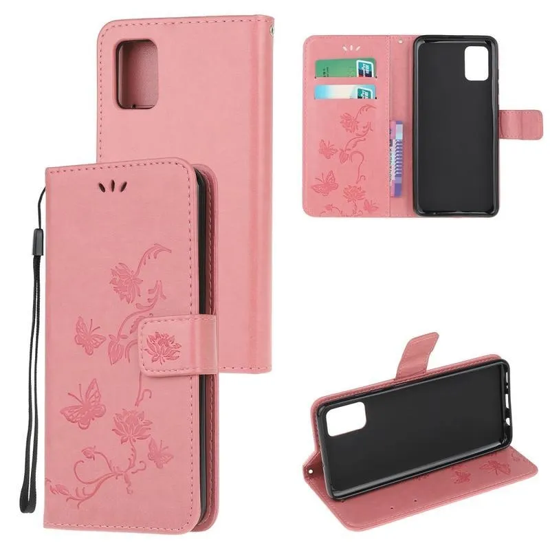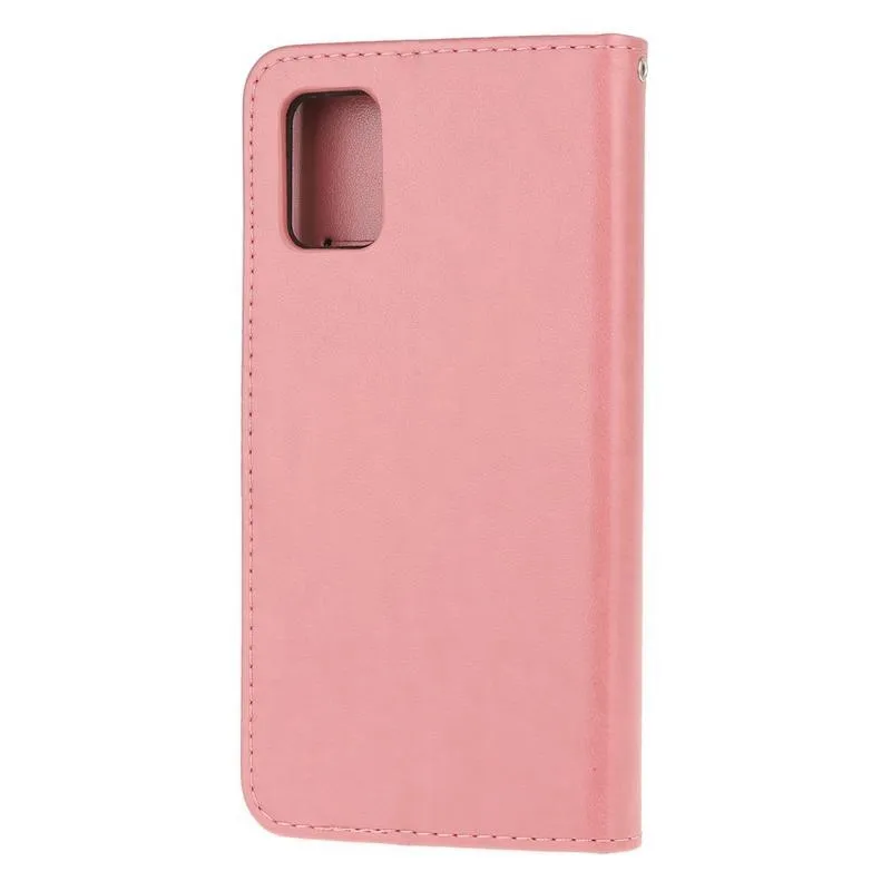 Virág PU bőr pénztárca tok Samsung Galaxy A51-hez - rózsaszín