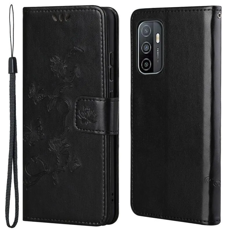 Virág fekete pénztárca tok Samsung Galaxy A53 5G számára