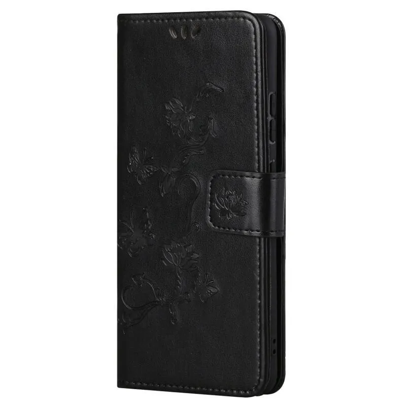 Virág PU bőr pénztárca tok Samsung Galaxy A53 5G-hez - fekete