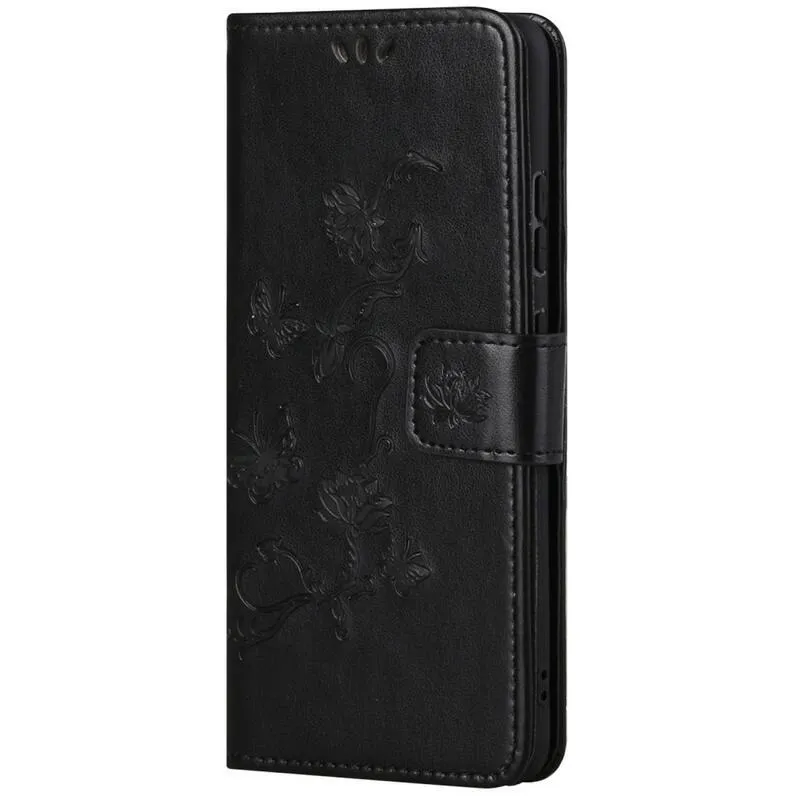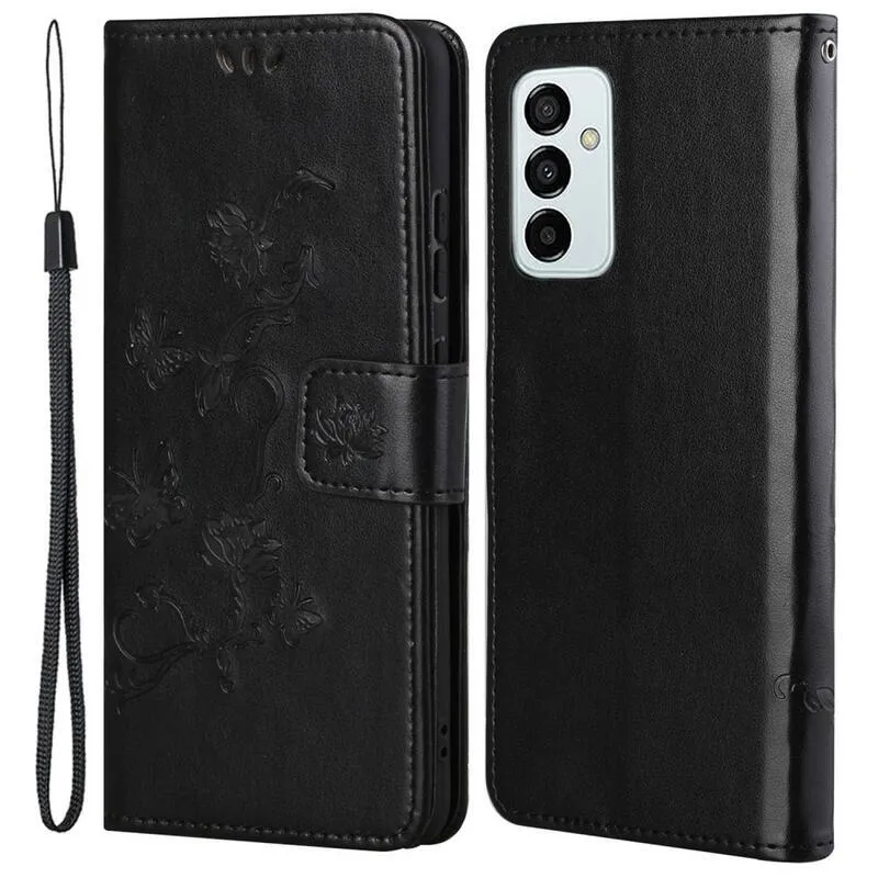 Virág PU bőr pénztárca tok Samsung Galaxy M23 5G-hez - fekete