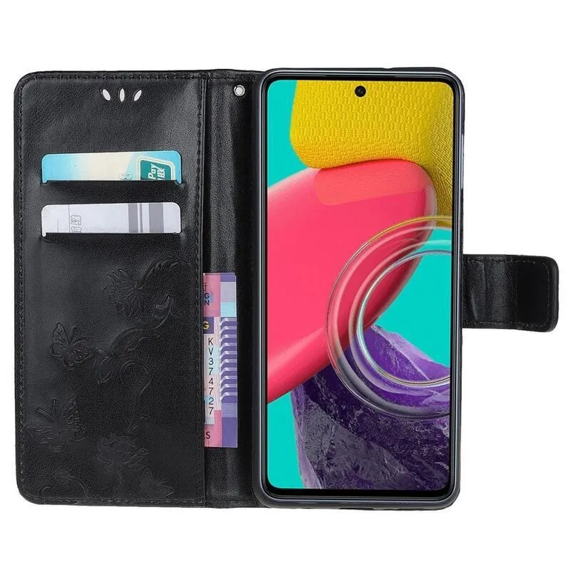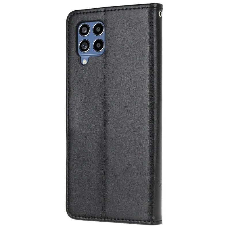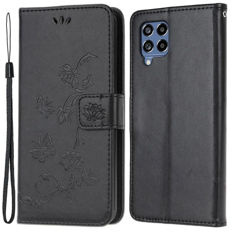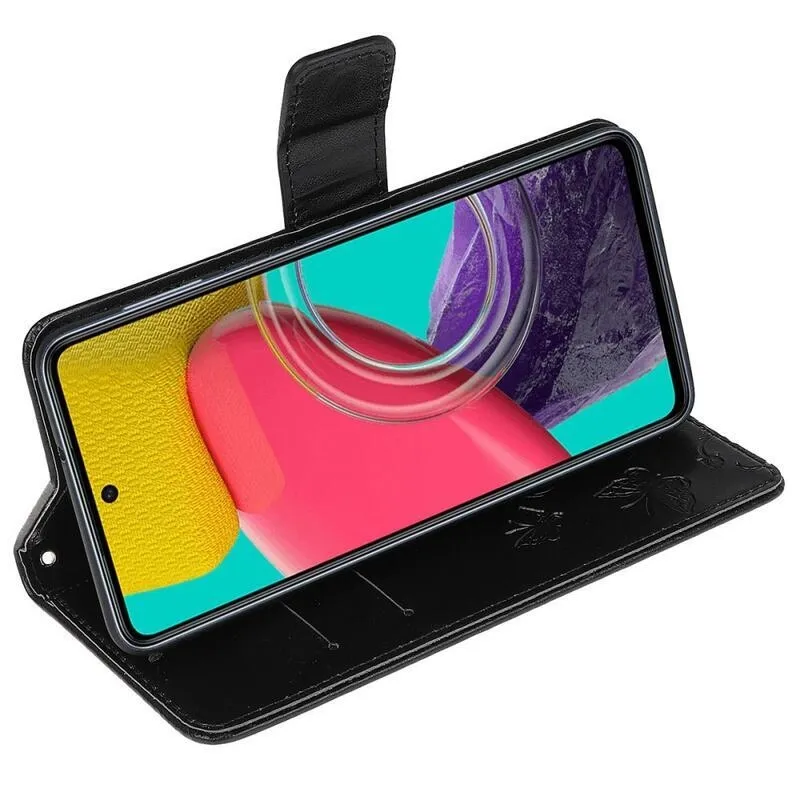Virág PU bőr pénztárca tok Samsung Galaxy M53 5G-hez - fekete