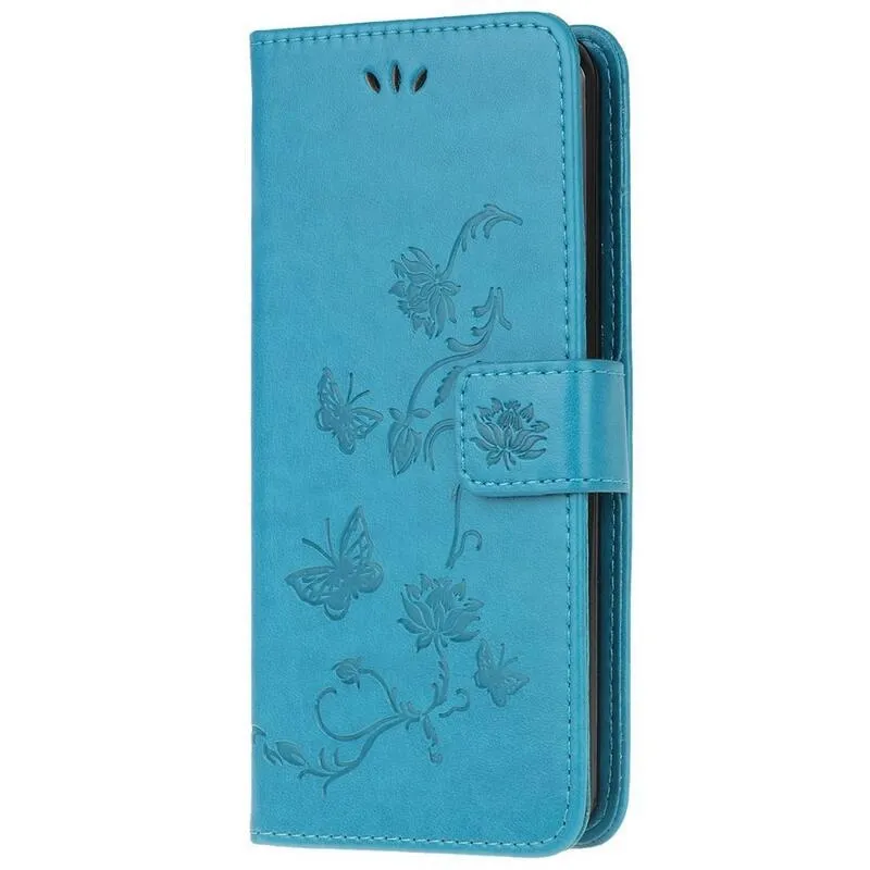 Virág kék pénztárca tok Samsung Galaxy M53 5G számára