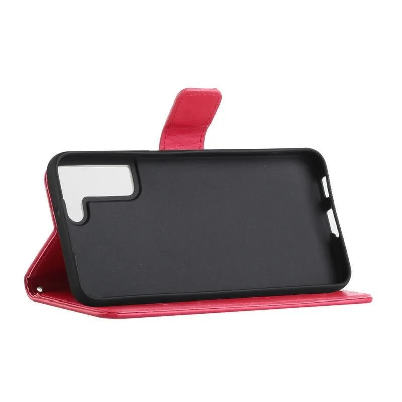 Virág PU bőr pénztárca tok Samsung Galaxy S22 5G-hez - piros