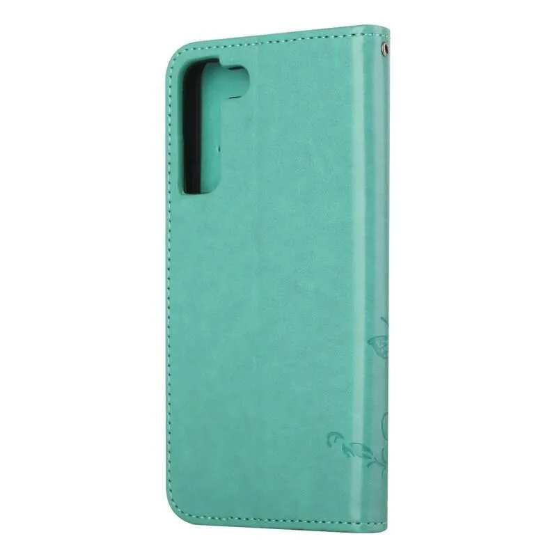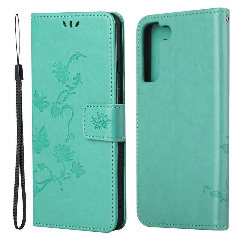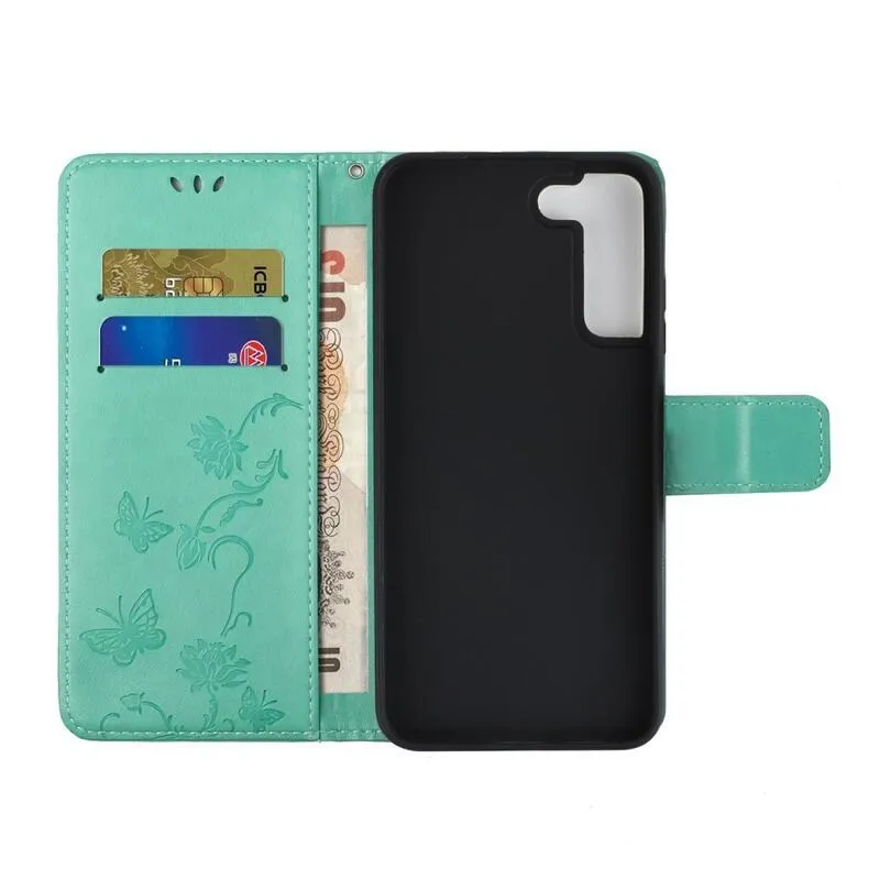 Virág PU bőr pénztárca tok Samsung Galaxy S22 5G-hez - zöld