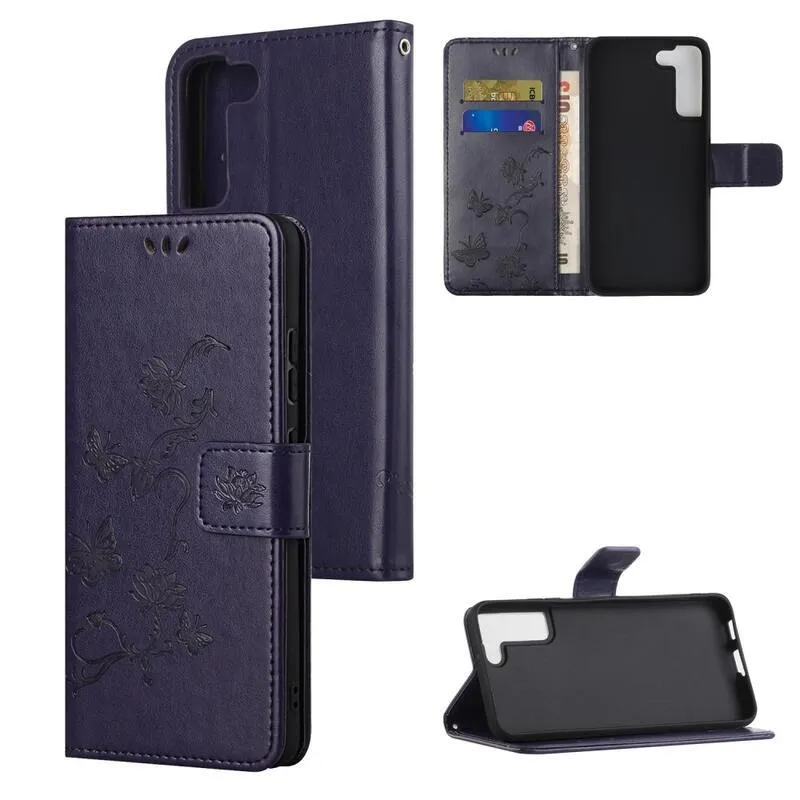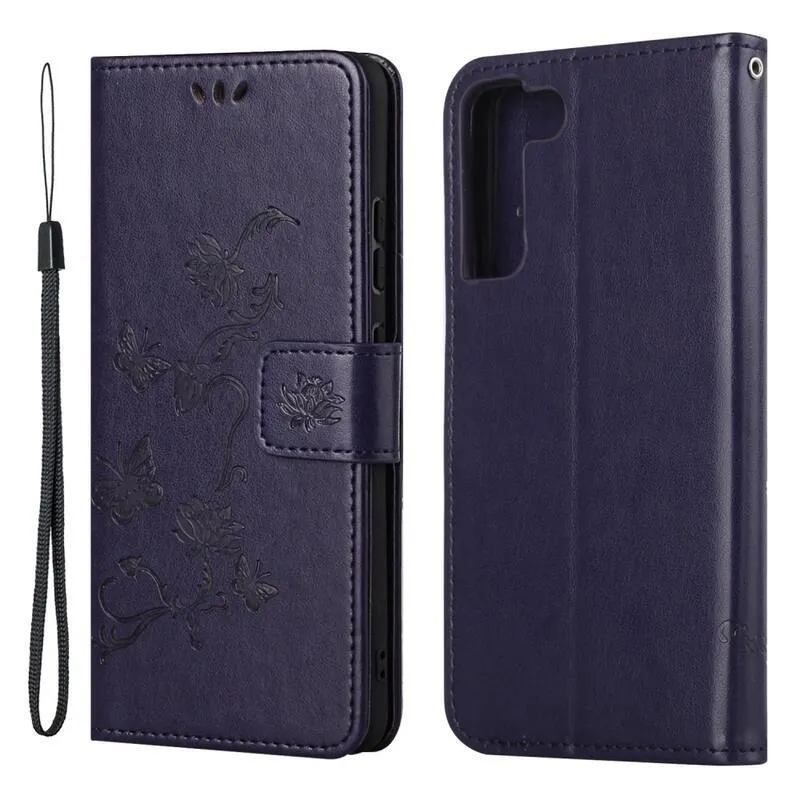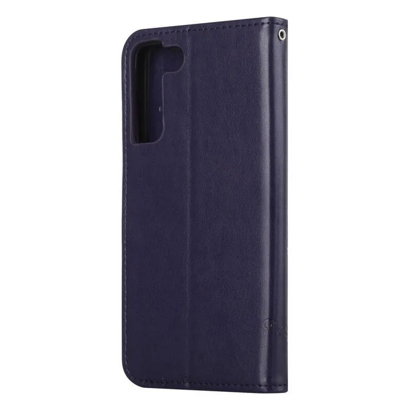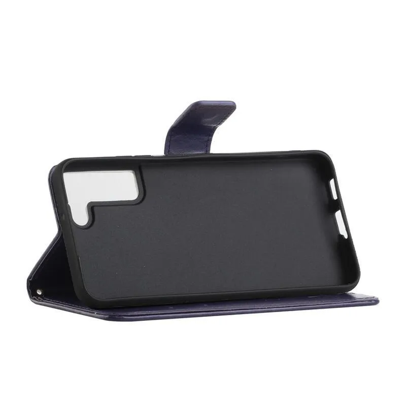 Virág sötétlila könyv tok Samsung Galaxy S22 5G számára