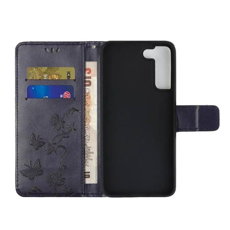 Virág PU bőr pénztárca tok Samsung Galaxy S22 5G - sötét lila