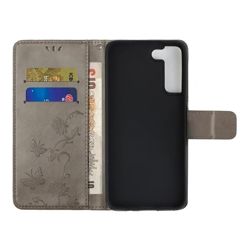 Virágszürke könyv tok Samsung Galaxy S22 5G számára