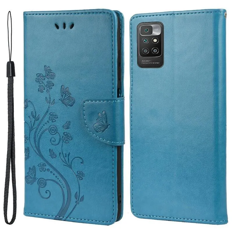 Virág PU bőr pénztárca tok Xiaomi Redmi 10/Redmi 10 (2022) - kék