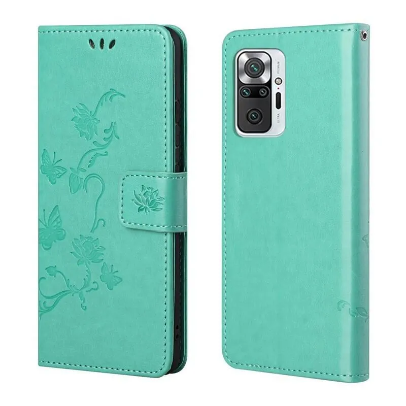 Virág PU bőr pénztárca tok Xiaomi Redmi Note 10 Pro - cián színű