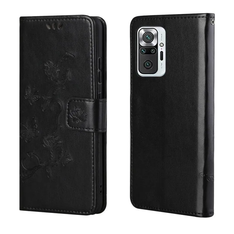 Virág PU bőr pénztárca tok Xiaomi Redmi Note 10 Pro-hoz - fekete