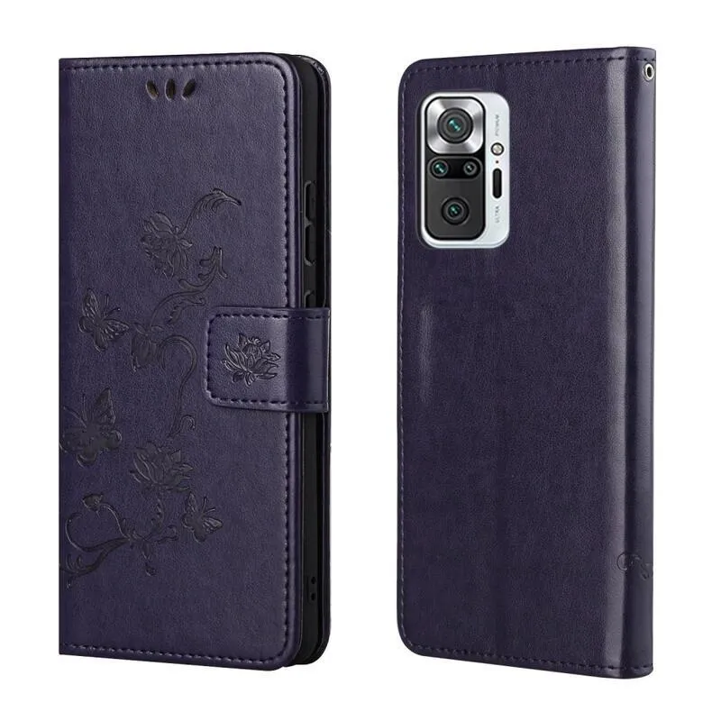 Virág PU bőr pénztárca tok Xiaomi Redmi Note 10 Pro-hoz - sötétlila