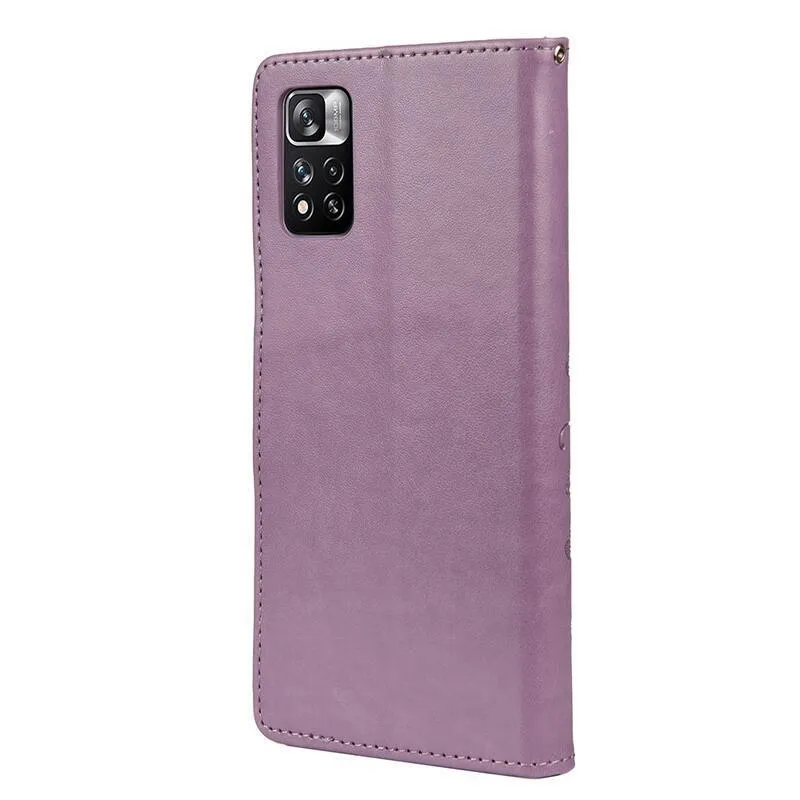 Virág PU bőr pénztárca tok Xiaomi Redmi Note 11 Pro 4G/5G - világos lila