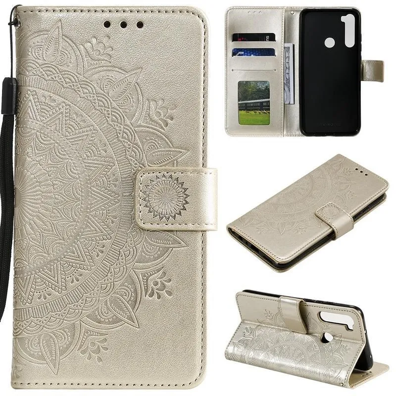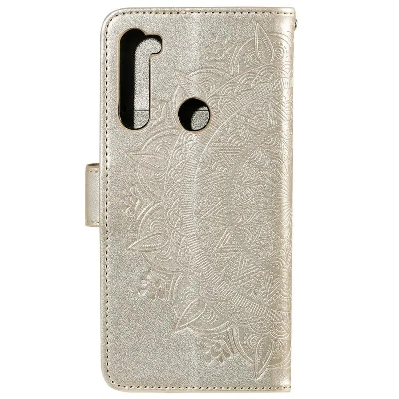 Virág PU bőr pénztárca tok Xiaomi Redmi Note 8-hoz - arany színű
