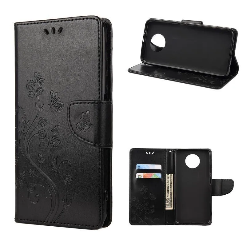 Virág fekete pénztárca tok Xiaomi Redmi Note 9T 5G számára