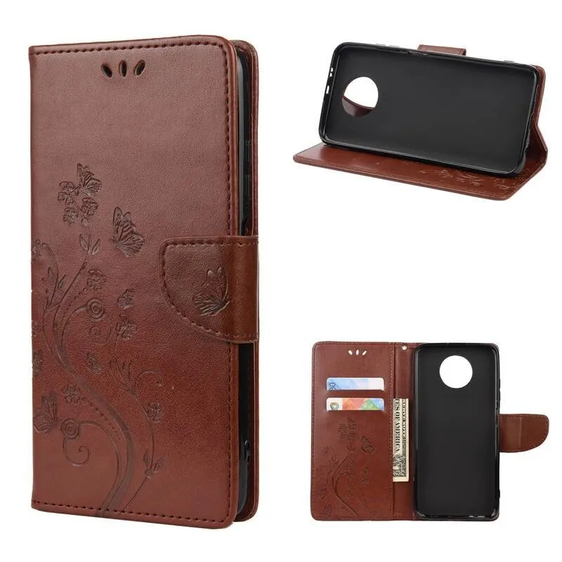 Virág barna pénztárca tok Xiaomi Redmi Note 9T 5G számára