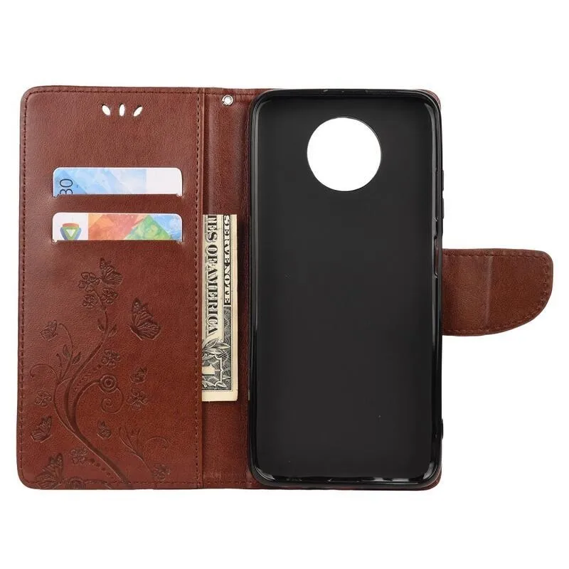 Virág PU bőr pénztárca tok Xiaomi Redmi Note 9T 5G-hez - barna