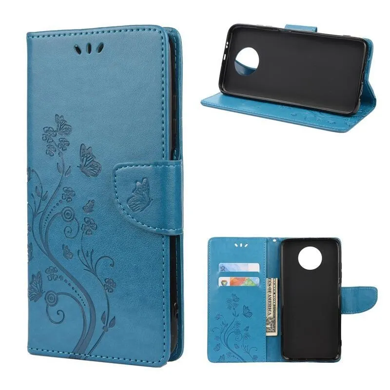 Virág kék pénztárca tok a Xiaomi Redmi Note 9T 5G-hez