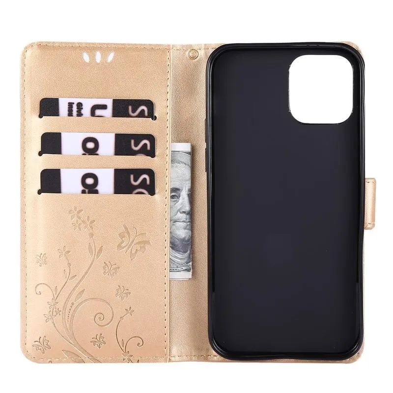 Virág arany pénztárca tok iPhone 12 Pro/12-hez