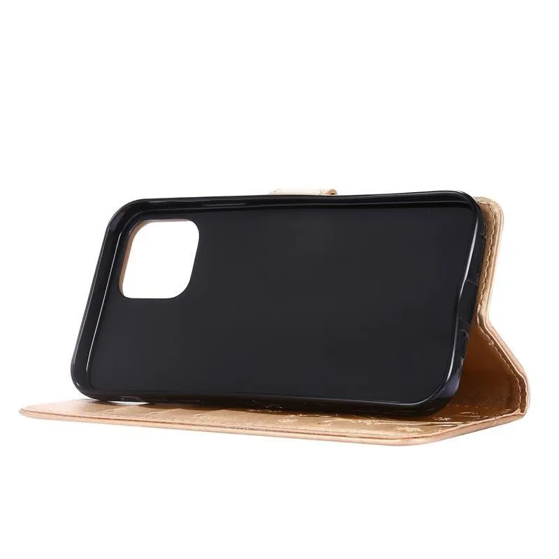 Virág PU bőr tok iPhone 12 Pro/12 készülékhez - arany színben