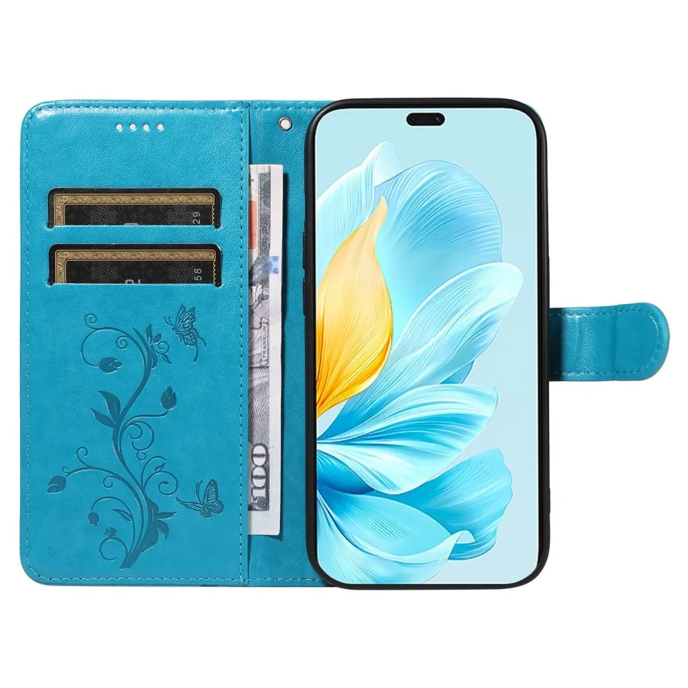 Kék pénztárca tok Virágok a Honor 200 Lite 5G számára