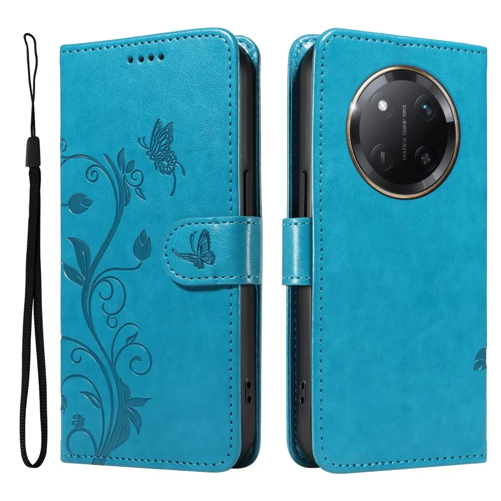 Kék pénztárca tok Virágok a Honor Magic 7 Lite 5G számára