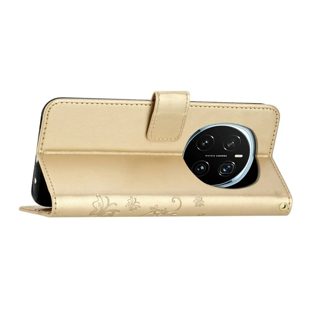 Arany pénztárca tok Virágok a Honor Magic 7 Pro 5G számára