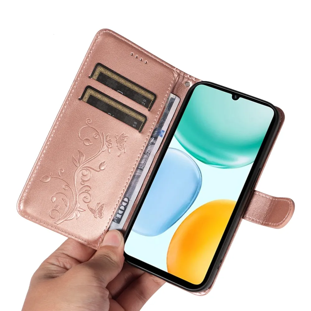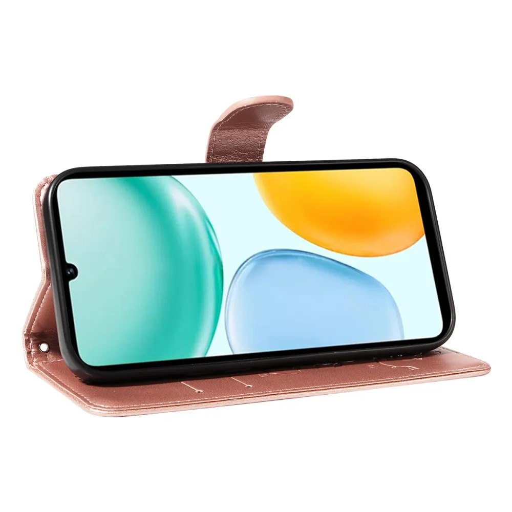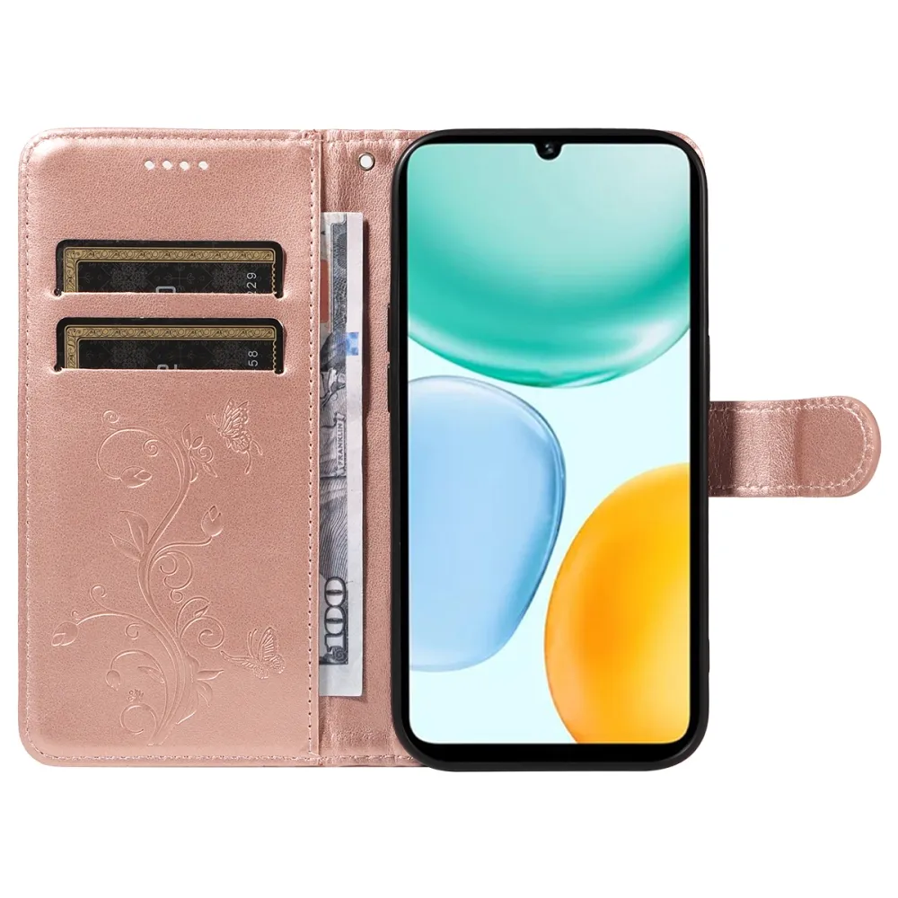 Rózsaarany virágos pénztárca tok Honor X5c Plus készülékhez