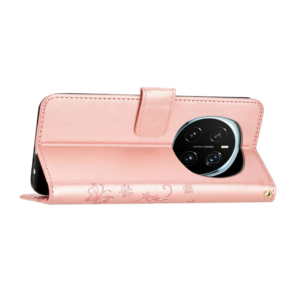 Rózsa arany Virágok pénztárca tok Honor Magic 7 Pro 5G számára