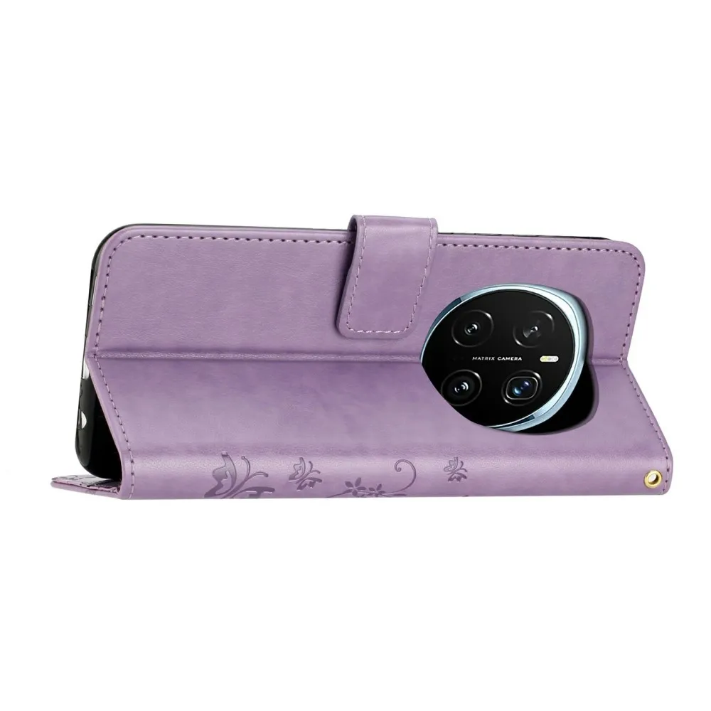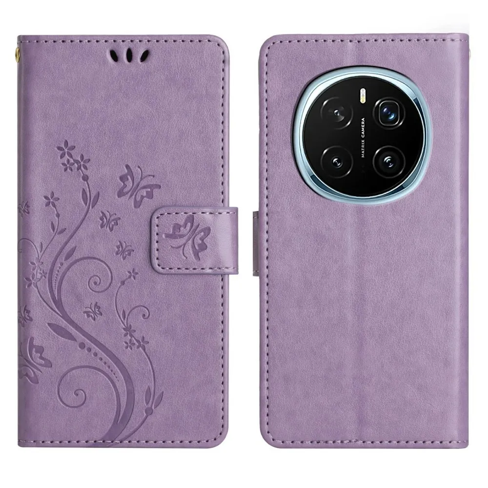 Világos lila Virágok pénztárca tok Honor Magic 7 Pro 5G számára
