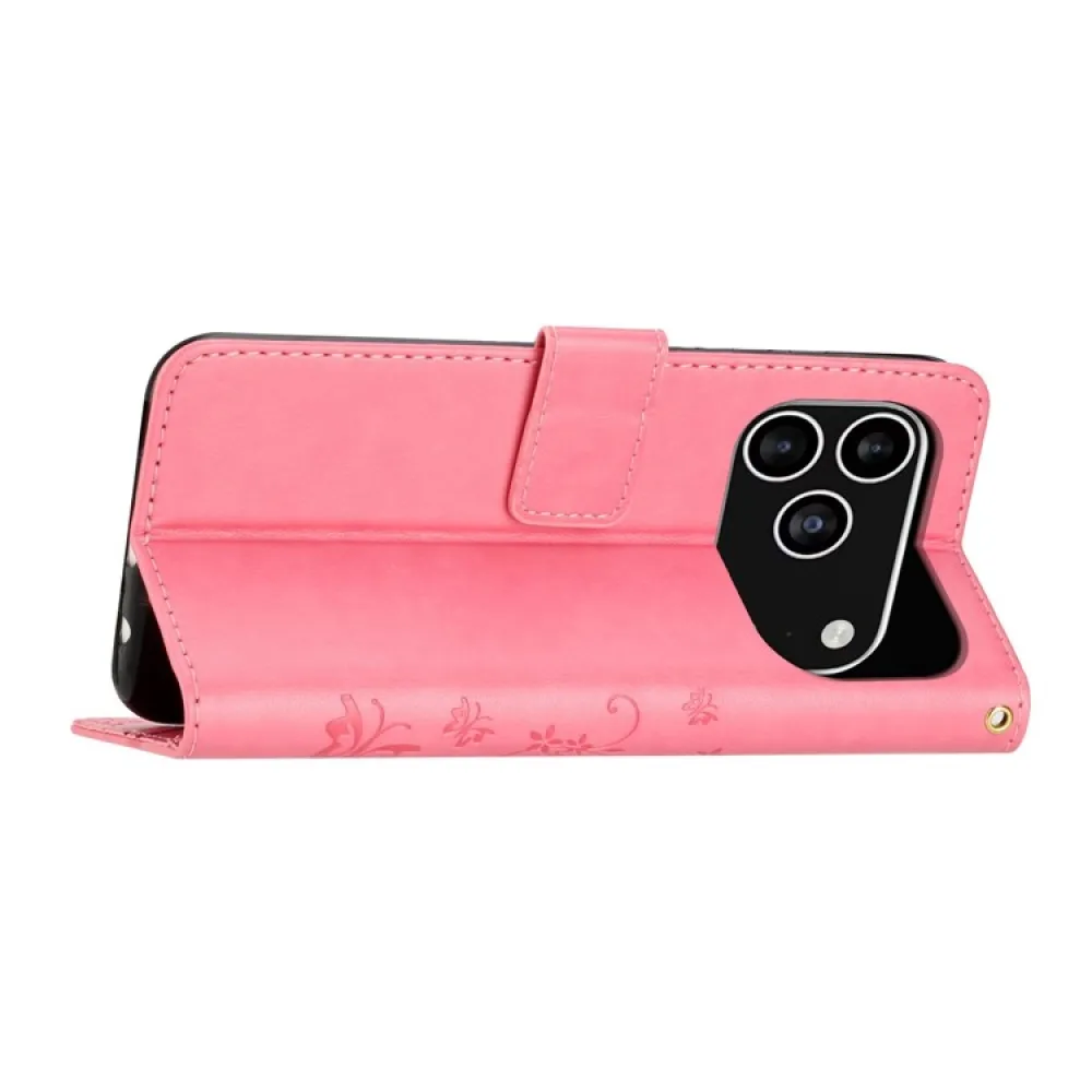 Rózsaszín pénztárca tok Virágok iPhone 17 Pro számára