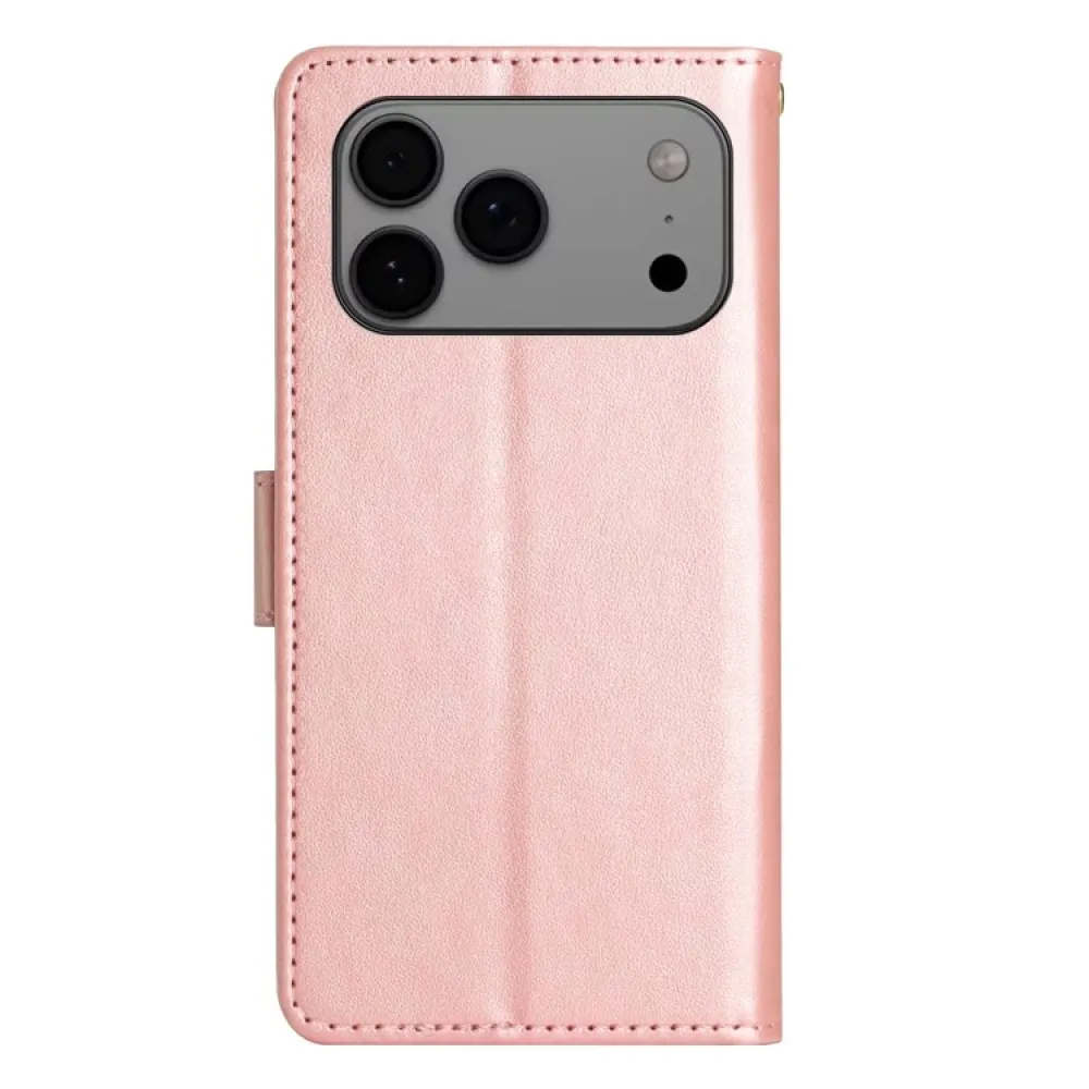 Rózsaarany Virágok pénztárca tok iPhone 17 Pro Max készülékhez