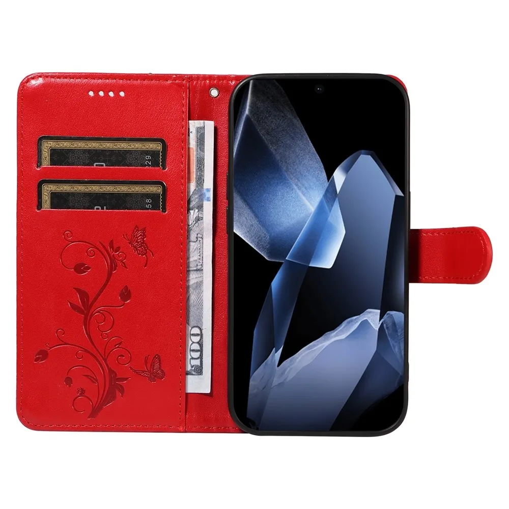 Virágok könyv tok OnePlus 13-hoz - piros